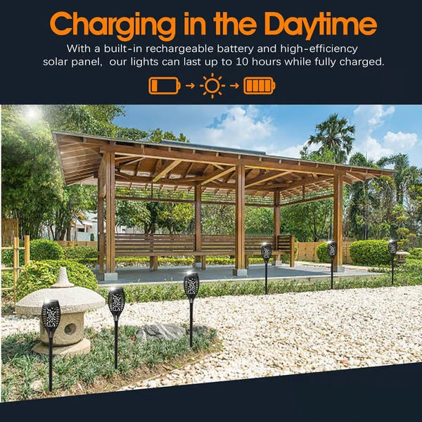 Transform your outdoor space with solar flicker flame torches that light up the night. Enjoy a cozy, inviting atmosphere without the hassle of wiring or electricity costs.